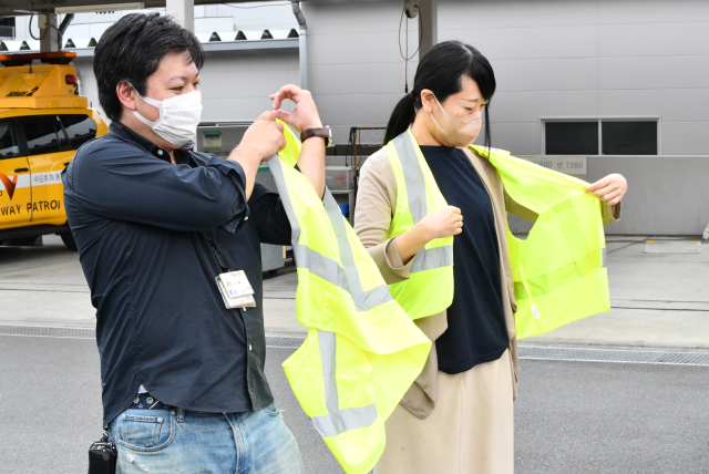 安全確保のためお二人ともセーフティーベストを着てください。