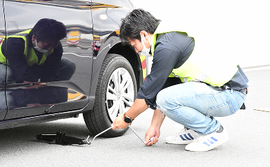 お客さま自身でタイヤ交換実施。