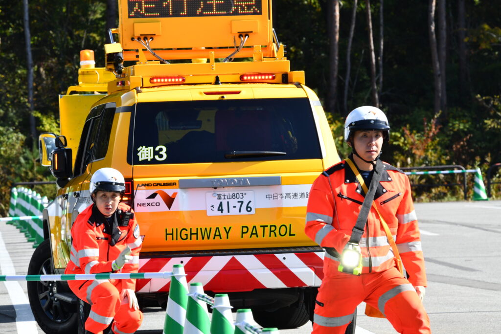 10月23日、富士山パーキング(山梨県富士吉田市)で2025年度高速道路安全訓練会を開催し、交通管理10基地と道路管制2基地計34人が参加しました。