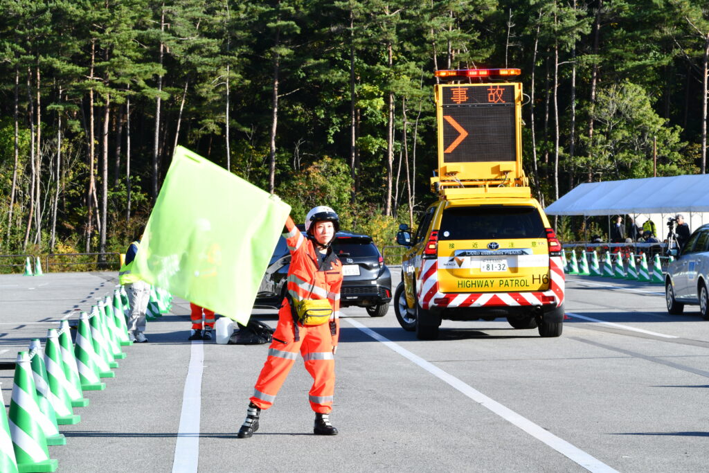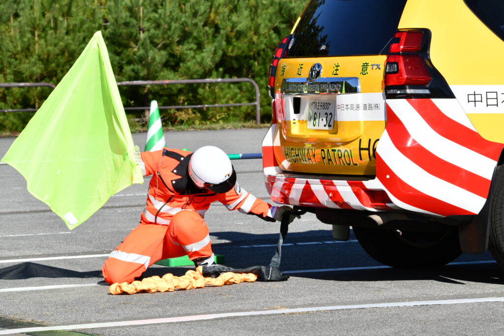 高速隊と連携した逆走車両対応や実際にあった事例をもとに、事故対応、障害物排除処理などの訓練を行い、各基地が日頃から積み重ねている安全を最優先とした対応方法などを披露しました。また、今年度から社員のご家族も招待し、小さなお子さまが訪れるなど緊張感だけでなく、賑わいにも包まれた雰囲気の中での開催となりました。