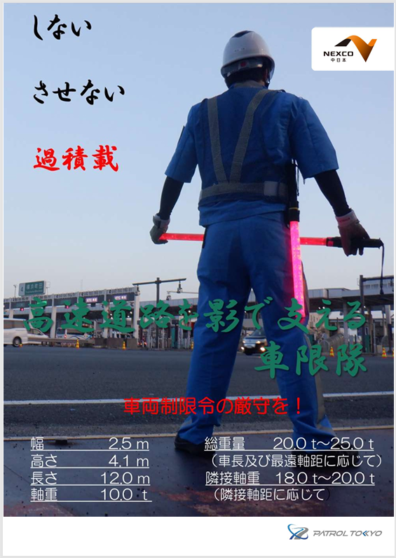 車両制限令違反車両を見逃さない漢たちは、寡黙な集団であり、光の当たらない現場で当たり前のことを当たり前にこなすプロ集団。まさに縁の下の力持ちな存在です。したがって、モデルを正面から撮影するのではなく、あえて後ろ姿を描写したポスターを制作しました。