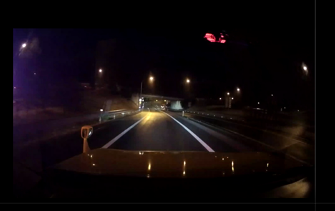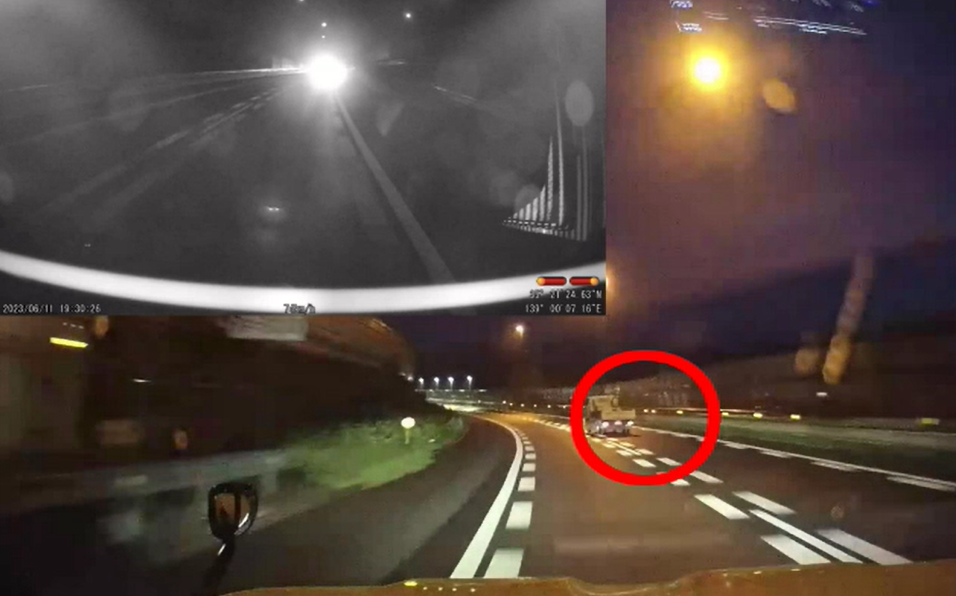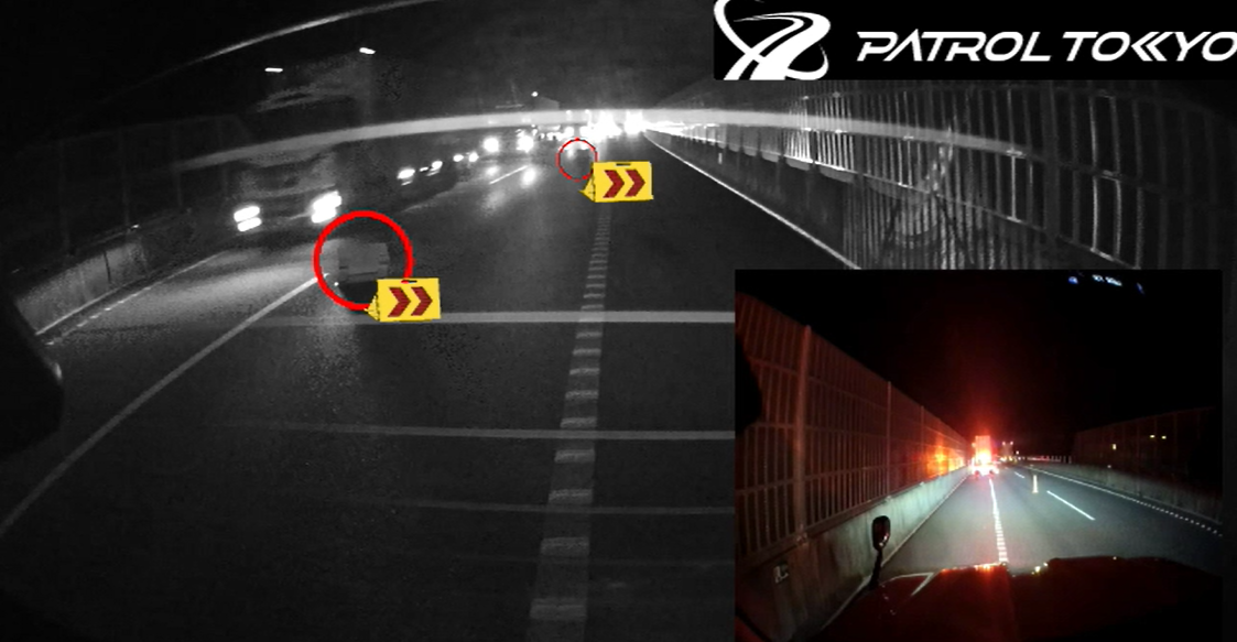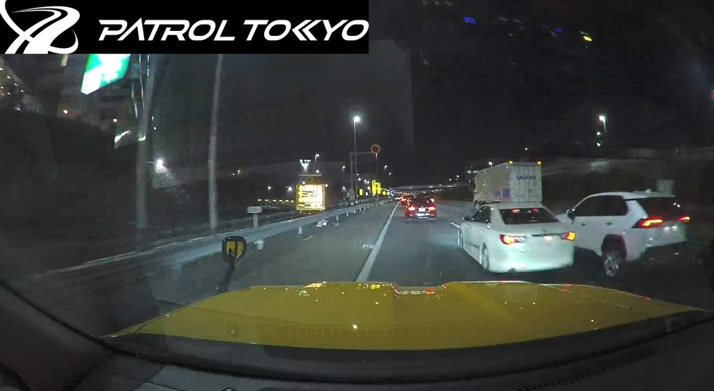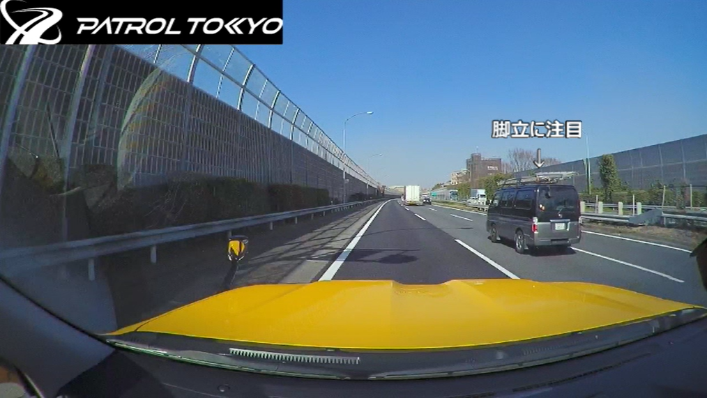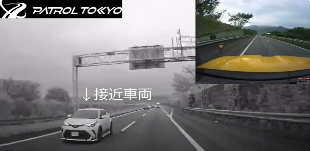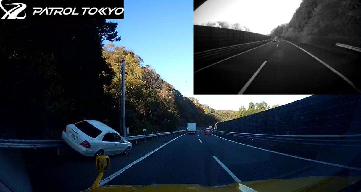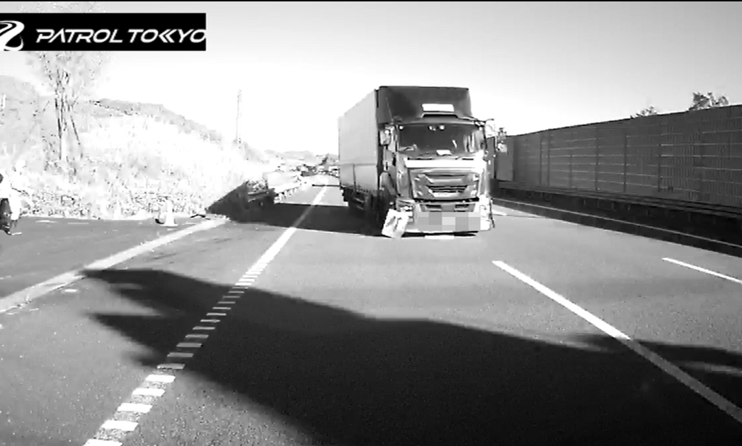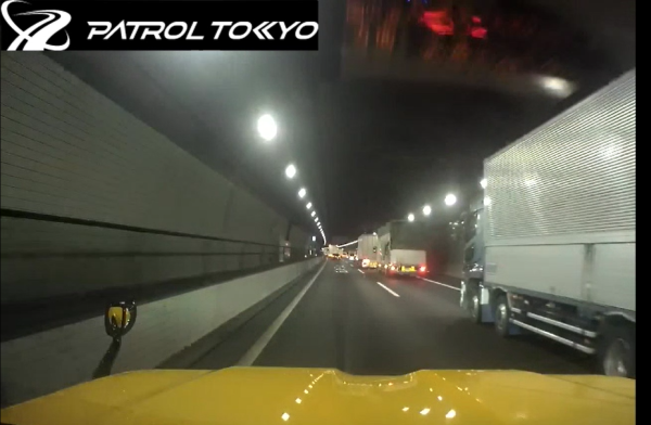 土曜日の夜間、中央道相模湖出口付近で、高速道路上に人が立ち入っているという通報を受け、渋滞内の路肩を緊急走行中、走行車線を進行していたお客さま…