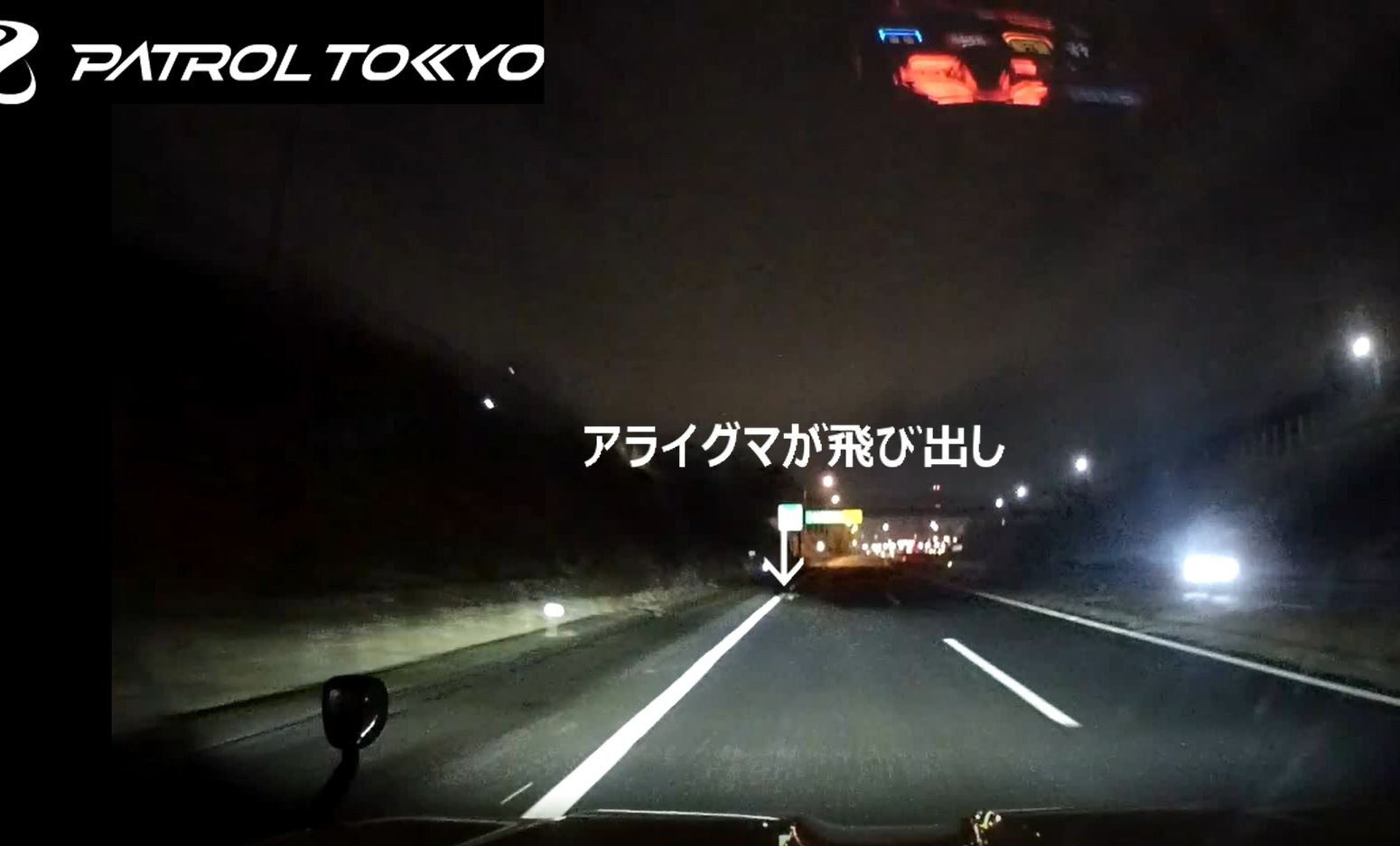 夜間の定期巡回中、中央道上り線の八王子IC手前付近を走行中、前方左側の路外から本線上に小動物(アライグマ)が飛び出してきました。減速し路肩へ回…
