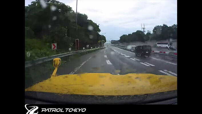 降りるインターを間違えた車両が直前で本線に戻ろうと目の前で進路変更をして危うく接触しそうな場面です。合流部付近では他の車両の動きもよく注意しま…